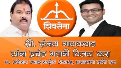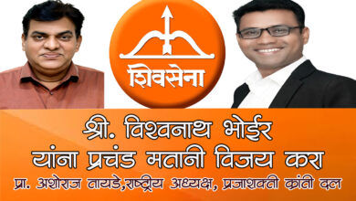 कल्याण पश्चिम विधानसभा मतदार संघातील महायुतीचे शिवसेना पक्षाचे उमेदवार श्री. विश्वनाथ भोईर यांना प्रचंड मतांनी विजयी करा – प्रा. अशोराज तायडे यांचे मतदारांना आव्हान