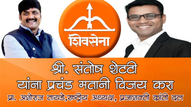 भिवंडी पूर्व विधानसभा मतदार संघातील महायुतीचे शिवसेना पक्षाचे उमेदवार श्री. संतोष शेट्टी यांना प्रचंड मतांनी विजयी करा – प्रा. अशोराज तायडे यांचे मतदारांना आव्हान