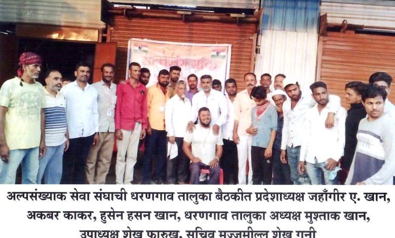 अल्पसंख्याक सेवा संघाची धरणगाव तालुका कार्यकारणी जाहीर, तालुका अध्यक्षपदी मुश्ताक खान उर्फ (रेहमान) यांची निवड