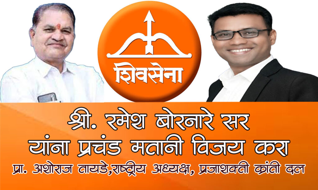 वैजापूर विधानसभा मतदार संघातील महायुतीचे शिवसेना पक्षाचे उमेदवार श्री. रमेश बोरनारे यांना प्रचंड मतांनी विजयी करा – प्रा. अशोराज तायडे यांचे मतदारांना आव्हान