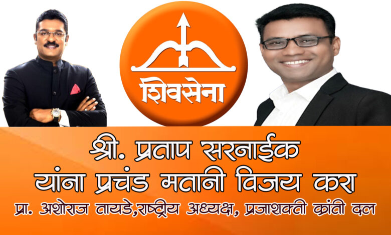 ओवळा माजिवडा विधानसभा मतदार संघातील महायुतीचे शिवसेना पक्षाचे उमेदवार श्री. प्रताप सरनाईक यांना प्रचंड मतांनी विजयी करा – प्रा. अशोराज तायडे यांचे मतदारांना आव्हान